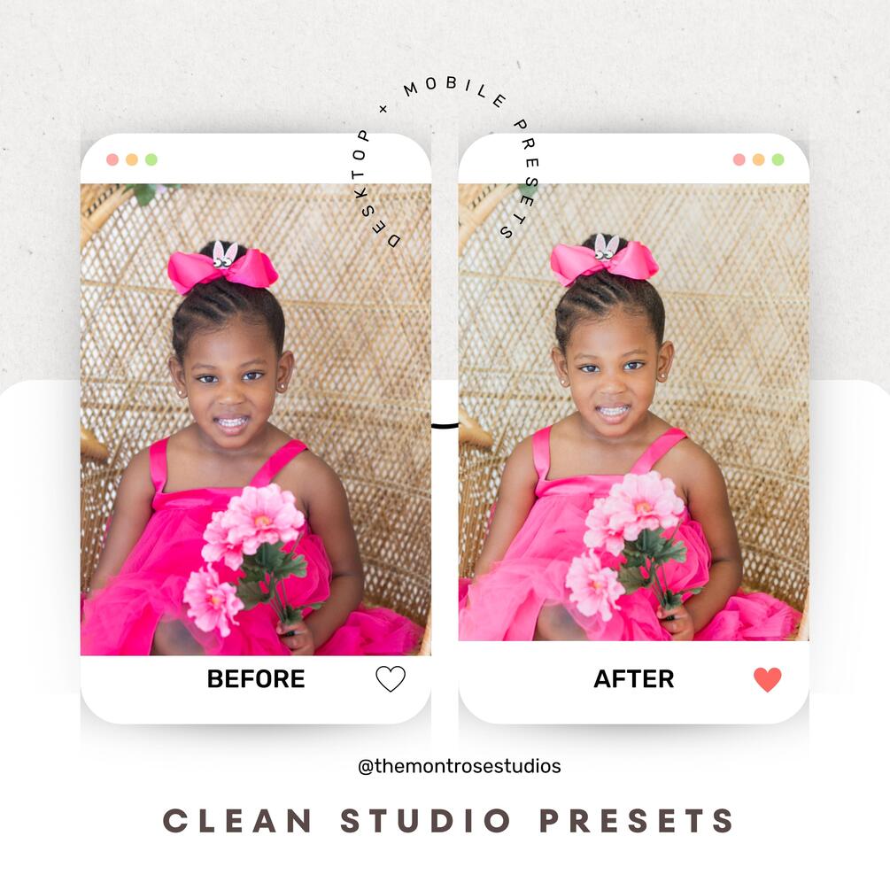 Create beautiful, unique photo edits with CLEAN STUDIO PRESETS - Indoor /Outdoor Session Colors
